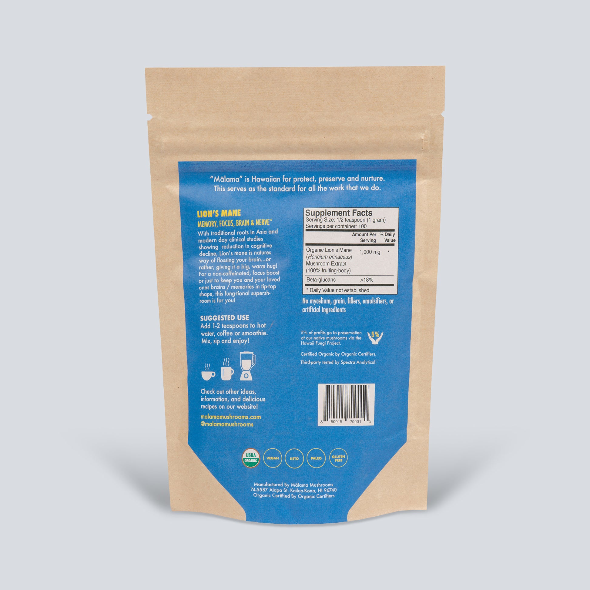 - 100% USDA Organic Lion's Mane Mushroom fruiting body extract